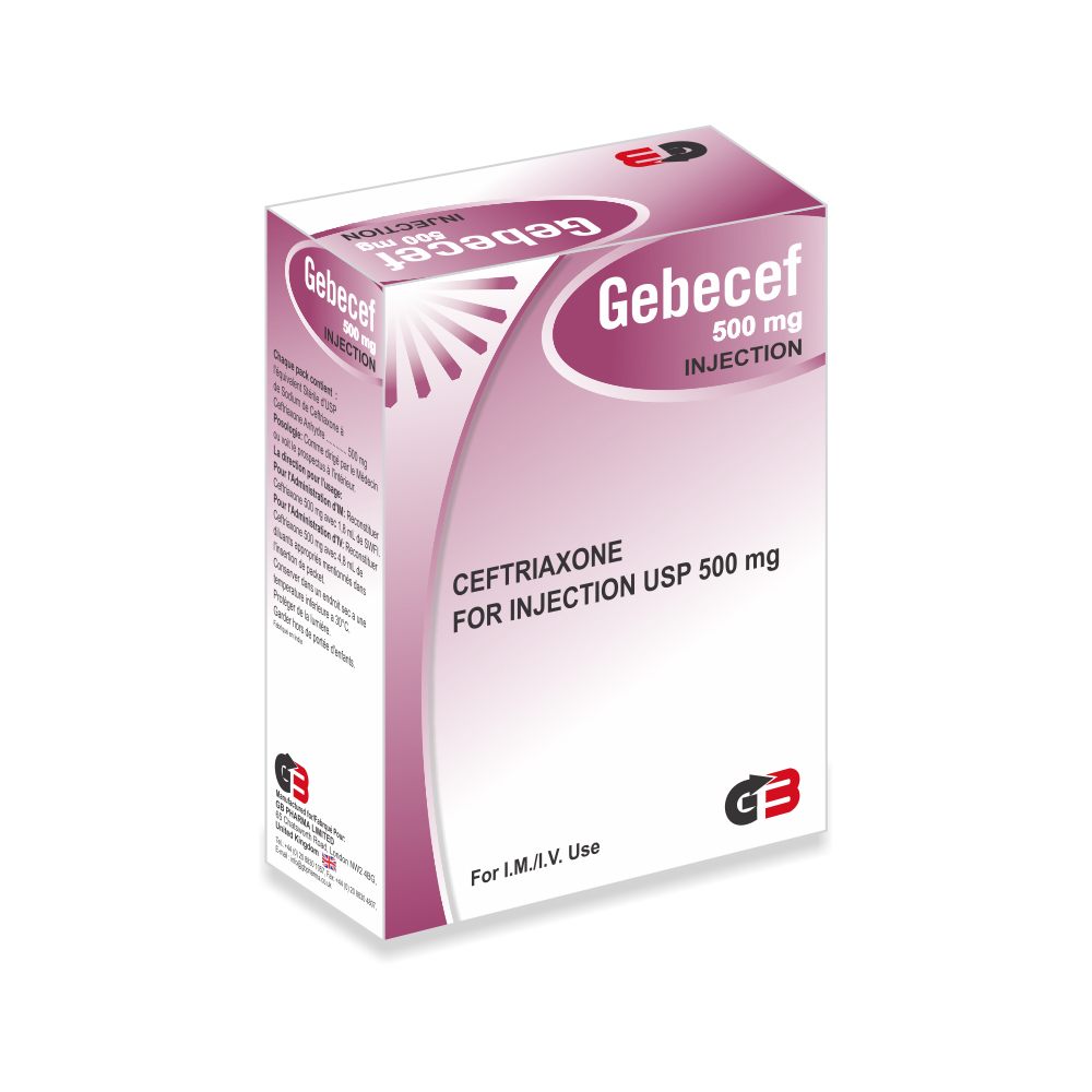 GEBECEF 500MG INJ Ceftriaxone for Injection USP 500 mg