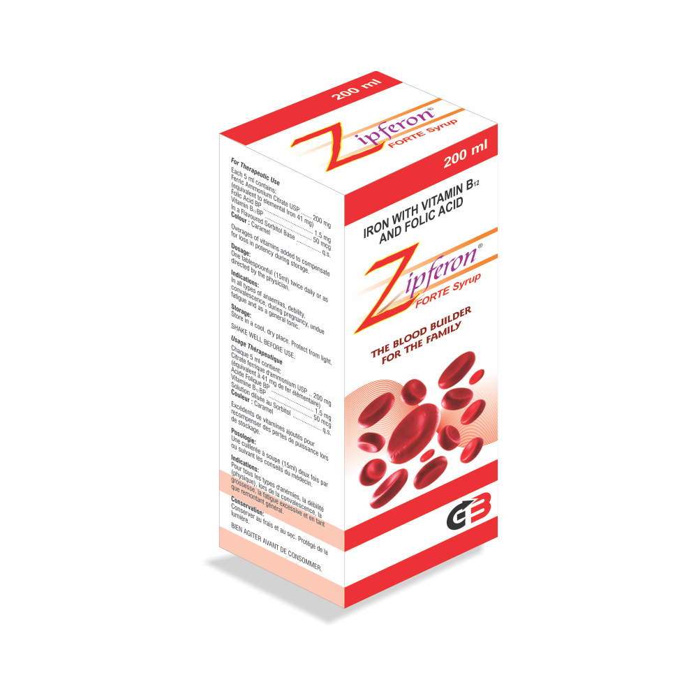 ZIPFERON FORTE SYRUP Iron with Vitamin B12 and Folic Acid Syrup